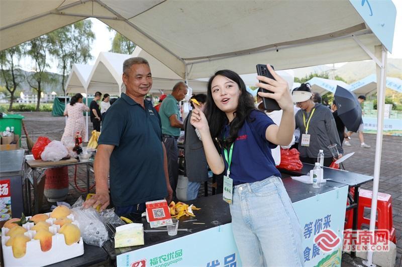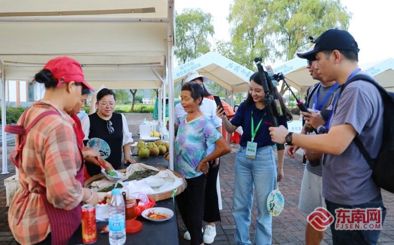 福建日報社全媒體傳播中心主持人現(xiàn)場介紹美食。 據(jù)悉,“福農(nóng)優(yōu)品·我在家鄉(xiāng)等你來”網(wǎng)絡直播活動自2023年5月起已連續(xù)舉辦兩屆。兩年來,眾多主播與媒體代表深入福建金牌旅游村、一村一品示范地,通過云端直播將八閩山水物產(chǎn)推向全國,生動展現(xiàn)鄉(xiāng)村振興的豐碩成果。