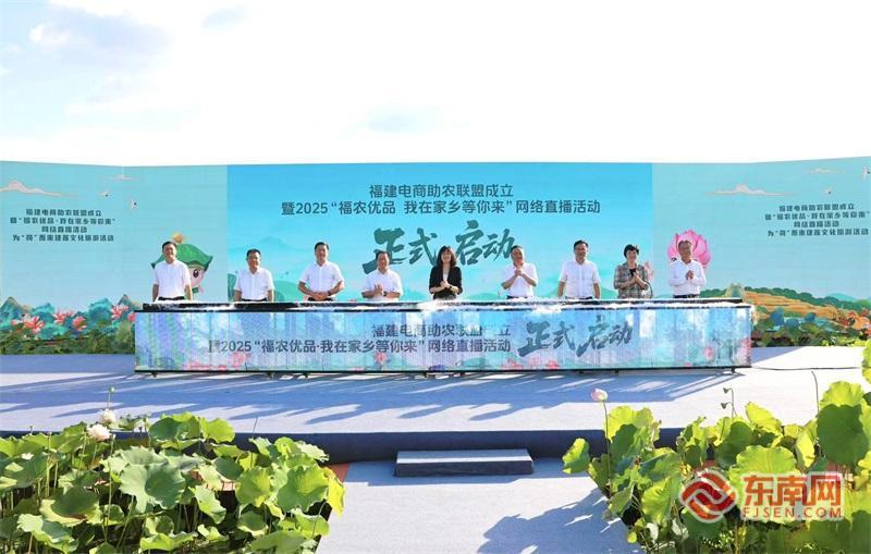 福建電商助農(nóng)聯(lián)盟成立暨“福農(nóng)優(yōu)品?我在家鄉(xiāng)等你來”網(wǎng)絡直播活動正式啟動。 東南網(wǎng)8月13日訊(本網(wǎng)記者 盧金福 傅心婕 肖曉敏 文/圖)為深入貫徹落實習近平總書記關于“三農(nóng)”工作的重要論述和對網(wǎng)信工作的重要指示精神,大力實施《數(shù)字鄉(xiāng)村發(fā)展戰(zhàn)略綱要》,進一步推動農(nóng)村電商高質(zhì)量發(fā)展,8月13日,福建電商助農(nóng)聯(lián)盟成立暨“福農(nóng)優(yōu)品?我在家鄉(xiāng)等你來”網(wǎng)絡直播活動、為“荷”而來建蓮文化旅游活動在三明市建寧縣啟動?;顒訉㈤_展系列數(shù)字強農(nóng)惠農(nóng)富農(nóng)專項行動,以福建電商助農(nóng)聯(lián)盟成立為契機,網(wǎng)聚各方力量,帶熱“福農(nóng)優(yōu)品”。 省委副書記、福州市委書記郭寧寧出席活動并講話,省委宣傳部副部長、省委網(wǎng)信辦主任、省互聯(lián)網(wǎng)信息辦公室主任申月,省委宣傳部副部長、福建日報社黨組書記、社長陳輝宗,省農(nóng)業(yè)農(nóng)村廳黨組書記、廳長陳明旺,以及省委辦公廳、省文旅廳、省人社廳、省商務廳、省婦聯(lián)、省廣播影視集團、省農(nóng)村信用社聯(lián)合社、興業(yè)銀行、中國銀行福建省分行、中國建設銀行福建省分行、三明市、建寧縣相關負責同志出席活動。 活動現(xiàn)場亮點紛呈,舉辦了福建電商助農(nóng)聯(lián)盟成立儀式。該聯(lián)盟由省委網(wǎng)信辦牽頭,聯(lián)合省農(nóng)業(yè)農(nóng)村廳、省文旅廳、省婦聯(lián)共同指導,福建日報社(東南網(wǎng))、福建農(nóng)林大學、興業(yè)銀行等10家單位發(fā)起,匯聚MCN機構、供應鏈企業(yè)、金融機構等多方力量,依托福建省特色農(nóng)產(chǎn)品和文旅資源優(yōu)勢,構建“政府引導+市場運作+社會參與”的協(xié)同機制,借助數(shù)字技術,形成數(shù)字鄉(xiāng)村強農(nóng)惠農(nóng)富農(nóng)、鄉(xiāng)村文旅深度融合、各類主體協(xié)同共建供應鏈、文化產(chǎn)業(yè)賦能鄉(xiāng)村振興的立體化服務體系,推進鄉(xiāng)村全面振興。