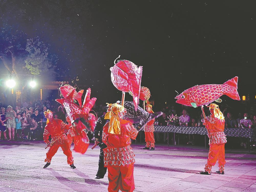 非遺五夫龍魚戲精彩表演。 “勝日尋芳泗水濱,無(wú)邊光景一時(shí)新……”17日,隨著晚霞漫天,武夷山市五夫鎮(zhèn)文化禮堂熱鬧了起來(lái),當(dāng)?shù)胤沁z展演中心的舞蹈《春日》如清風(fēng)拂過(guò)古街,為盛夏的夜晚注入一抹清涼。 當(dāng)晚,五夫鎮(zhèn)在文化禮堂搭起戲臺(tái)子,鄉(xiāng)村大舞臺(tái)“古鎮(zhèn)尋芳 非遺雅韻”在此上演,優(yōu)質(zhì)文化資源直達(dá)基層,讓當(dāng)?shù)卮迕裨诩议T口樂享“文化大餐”。 五夫龍魚隊(duì)帶來(lái)極具地方特色的龍魚戲民俗表演,古老的非遺代表性項(xiàng)目一登場(chǎng)便吸引了眾人的目光,活靈活現(xiàn)的龍魚靈動(dòng)穿梭,打破了傳統(tǒng)舞臺(tái)的界限;村民黃鶴鳴以一曲《碧澗流泉》古琴獨(dú)奏,帶眾人領(lǐng)略山林幽澗、流泉泠泠的意趣;女聲獨(dú)唱《相思謠》、歌舞《觀書有感》婉轉(zhuǎn)多情,大合唱《好運(yùn)全都來(lái)》更讓臺(tái)上臺(tái)下融成一片…… “鄉(xiāng)村大舞臺(tái)”搭在村口的文化禮堂,群眾紛紛叫好。臺(tái)上,既有專業(yè)團(tuán)隊(duì)帶來(lái)的非遺表演,也有村民聯(lián)合編排的土味節(jié)目;臺(tái)下,村民和游客人頭攢動(dòng),大家看著表演、聊著天,孩子們自由地在臺(tái)前奔跑玩?!拔宸蛟絹?lái)越好了,一到周末就有好戲連臺(tái),有空要?;貋?lái)看看呀!”村民鄒秀風(fēng)舉著手機(jī)拍個(gè)不停,分享給在外的鄉(xiāng)親。 本期“鄉(xiāng)村大舞臺(tái)”活動(dòng)還邀請(qǐng)“五夫春春”“小玲先生”等當(dāng)?shù)剜l(xiāng)村文旅新業(yè)態(tài)主理人來(lái)“聊家?!?分享他們作為五夫新鄉(xiāng)人、歸鄉(xiāng)人的故事。 夜色漸深,村民游客仍意猶未盡。文化禮堂暖黃的燈光下,有人回味著《碧澗流泉》的悠遠(yuǎn)琴音,有人念叨著《朱子儒風(fēng)?禮承師心》里莊重的禮儀,有老人拉著志愿者的手,夸贊“聊家?!杯h(huán)節(jié)道出了大伙兒的心里話。(張?bào)阆?彭靜蕓 周緣媛 文/圖) |