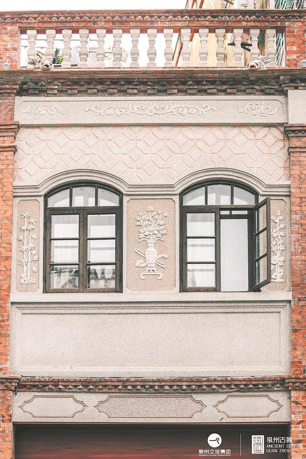 火焰窗削烈日,弧窗兜晚霞,三聯(lián)窗把街景裁成連環(huán)畫。當(dāng)整條街被磚紅和水刷石白統(tǒng)治,總有幾扇“叛逆”的藍(lán)窗和黃紋跳出來,把閩南的天空偷來貼在墻上。 參與中山路修繕的莊海濱介紹說,小巧玲瓏的圓窗偏愛點綴于小樓,中大型的宅邸則青睞方窗或那氣勢獨(dú)特的火焰窗。每一扇窗,都暗藏玄機(jī):綿延不斷的回型紋,是福壽吉祥的密碼;優(yōu)雅重復(fù)的萬字紋,訴說著萬福萬壽的祈愿;流轉(zhuǎn)不息的云紋,則寄托著平步青云的向往。“一窗一世界”,古老的閩南營造智慧,在方寸之間將“窗牖無拘,隨宜合用”的東方美學(xué),演繹得淋漓盡致。(泉州晚報融媒體記者 王金植 通訊員 王越樂 賴東榮 文/圖) |