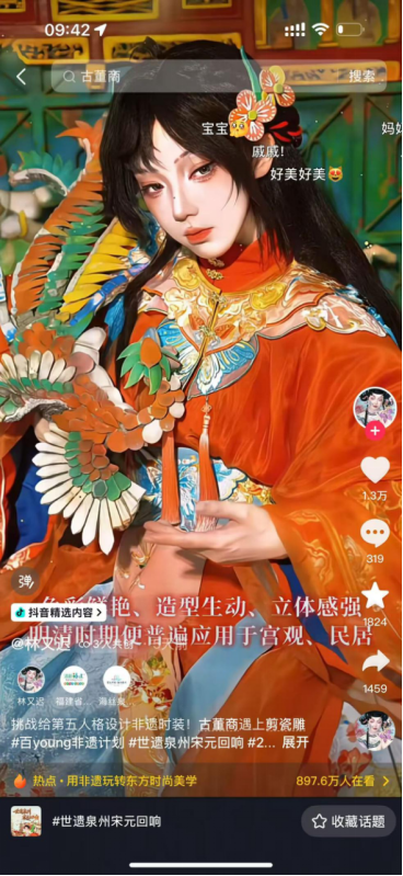 在抖音平臺的300多個(gè)短視頻作品中,泉州非遺不再是博物館中的標(biāo)本,而是化身可體驗(yàn)、可傳播的“生活美學(xué)”。創(chuàng)新文旅推介,講好泉州故事,以文塑旅,以旅彰文。要讓泉州成為全國最具煙火氣的旅游城市、世界海絲多元文化旅游目的地,講好泉州故事是一條重要路徑。 本月“泉州世遺宋元回響”話題的火熱,也離不開達(dá)人們在文旅推介上的創(chuàng)新。不少達(dá)人借助AI人工智能手段,還原泉州的千年歷史。來自四川的傳統(tǒng)文化創(chuàng)作者劉玉,擁有485萬粉絲,他在泉州市南音傳承中心體驗(yàn)學(xué)習(xí)南音。以我國十大名畫《韓熙載夜宴圖》為切入點(diǎn),特地為畫中場景編曲,讓名畫“活”起來。他的短視頻,不僅讓百萬網(wǎng)友看見古人生活?yuàn)蕵穲鼍埃乙采钊胪诰蚯昴弦粑幕瘍r(jià)值。