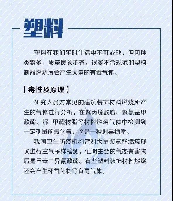 生活中常見的一些物品,燃燒后會產(chǎn)生有毒氣體,不僅對人體有害,也可能會引發(fā)火災(zāi)事故??靵砜纯?,千萬別燒著玩。它們就在你身邊,可也許你并不知道燃燒后的它們這么毒,點下圖了解。
