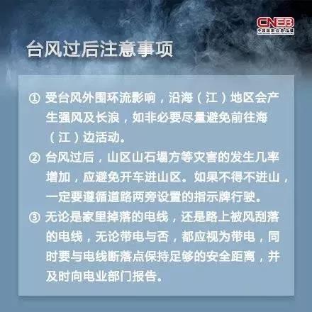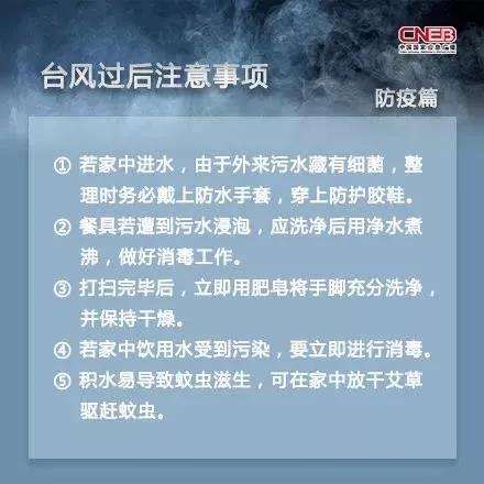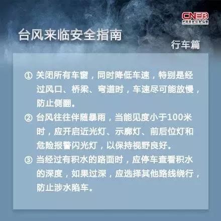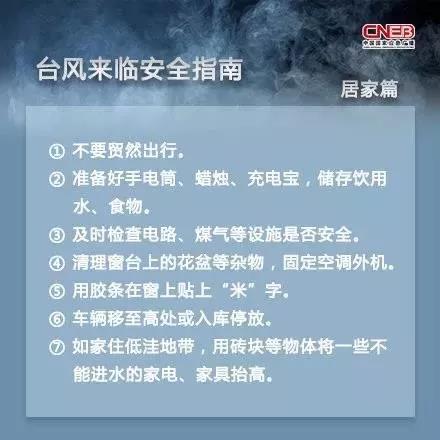 防御指南 1.政府及相關部門按照職責做好防臺風搶險應急工作。 2.相關水域水上作業(yè)和過往船舶應當回港避風,加固港口設施,防止船舶走錨、擱淺和碰撞。 3.停止室內外大型集會和高空等戶外危險作業(yè)。 4.加固或者拆除易被風吹動的搭建物,人員切勿隨意外出,應盡可能待在防風安全的地方,確保老人小孩留在家中最安全的地方,危房人員及時轉移。當臺風中心經過時風力會減小或者靜止一段時間,切記強風將會突然吹襲,應當繼續(xù)留在安全處避風,危房人員及時轉移。 5.相關地區(qū)應當注意防范強降水可能引發(fā)的山洪、地質災害。 科普一下