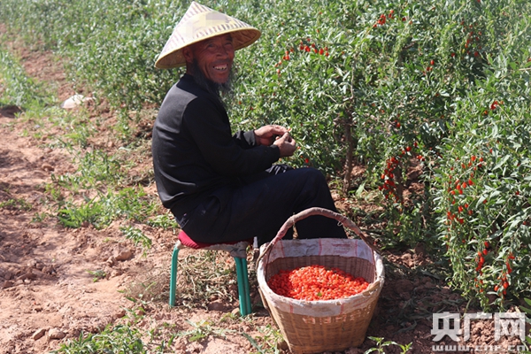莊園里的新鮮枸杞(央廣網(wǎng)記者 母晨靜 攝) 7月7日,記者首先來到吳忠市同心縣河西鎮(zhèn)同德村的枸杞莊園。據(jù)了解,同心縣位于寧夏中部干旱帶核心區(qū),屬于溫帶大陸性氣候,日照充足,晝夜溫差大,適宜種植枸杞這種耐旱植物。同德村是“十二五” 期間同心縣建設(shè)的最大生態(tài)移民村,2012年搬遷安置東部山區(qū)張家塬、預(yù)旺和王團(tuán)3個(gè)鄉(xiāng)鎮(zhèn)的群眾1379戶6310人,其中建檔立卡貧困戶969戶4151人,未脫貧建檔人口58戶160人。