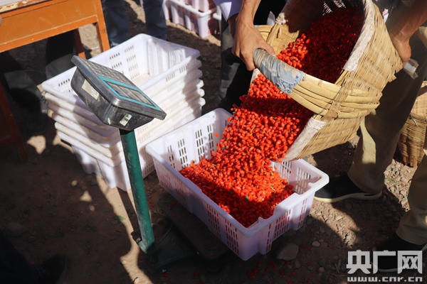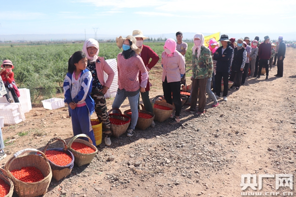 村民排隊(duì)等待枸杞收購(gòu)(央廣網(wǎng)記者 母晨靜 攝)