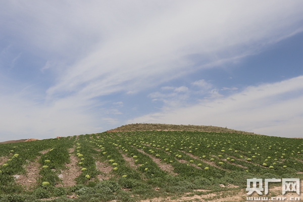 蓬勃生長(zhǎng)的硒砂瓜(央廣網(wǎng)記者 母晨靜 攝) 喊叫水村現(xiàn)有戶籍人口423戶1181人,是中寧縣重點(diǎn)貧困村之一。2006年以來,喊叫水村立足發(fā)展實(shí)際,不斷創(chuàng)新思路、強(qiáng)化舉措,加快產(chǎn)業(yè)結(jié)構(gòu)調(diào)整,大力發(fā)展硒砂瓜特色種植產(chǎn)業(yè)。