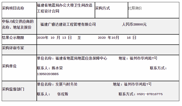 福建省地震局辦公大樓衛(wèi)生間改造工程設(shè)計(jì)采購結(jié)果公告