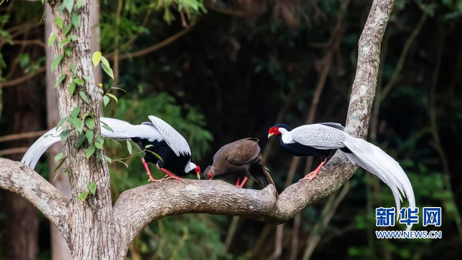 在永安市青水畬族鄉(xiāng)豐田村,幾只白鷴在林間的樹枝上嬉戲(11月20日攝)。新華社記者 彭張青 攝