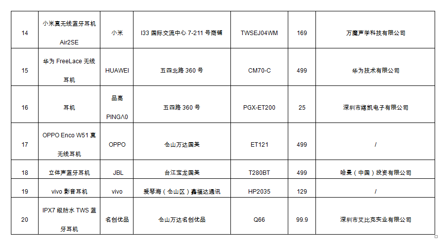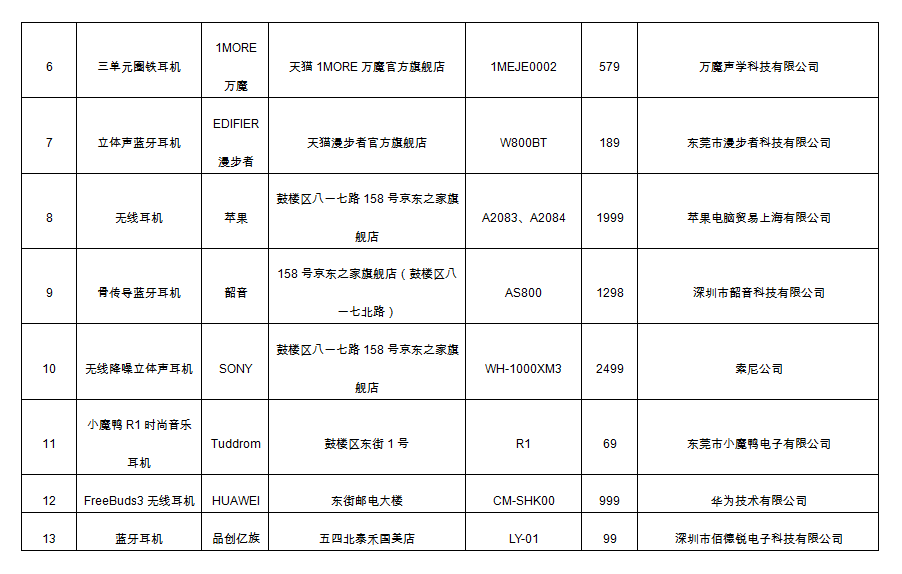 近期,福建省消委會聯(lián)合福建省產(chǎn)品質(zhì)量檢驗研究院的工作人員以普通消費者的身份在福州市部分大型綜合商貿(mào)體、校園周邊地區(qū)、以及線上銷售平臺購買了不同類型、不同品牌的20款耳機產(chǎn)品,圍繞消費者關(guān)注的產(chǎn)品安全和感觀體驗進行了比較試驗。 一、基本情況 本次耳機產(chǎn)品比較試驗對樣品的最大聲壓級、仿真節(jié)目信號特性電壓、總諧波失真、恒定濕熱、聽音檢驗、音質(zhì)感受、降噪效果、佩戴使用感受等進行了測評。采樣對象基本涵蓋市面上主流品牌,品牌涉及Baseus、鐵三角ATH、JVC/杰偉世、森海塞爾、1MORE萬魔、EDIFIER漫步者、蘋果、韶音、SONY、Tuddrom、HUAWEI、品創(chuàng)億族、小米、品高PINGΛ0、OPPO、JBL、vivo、名創(chuàng)優(yōu)品。耳機類型包含頭梁式、懸掛式和耳塞式等,其中電商平臺7款,線下實體店13款,共計20款產(chǎn)品,價格在25元-2499元之間。 福建省消委會委托福建省產(chǎn)品質(zhì)量檢驗研究院依據(jù)國家相關(guān)標(biāo)準(zhǔn)以及經(jīng)備案現(xiàn)行有效的或網(wǎng)上聲明公開的企業(yè)標(biāo)準(zhǔn)及產(chǎn)品明示質(zhì)量指標(biāo)和要求或其他相適應(yīng)產(chǎn)品標(biāo)準(zhǔn)對樣品進行檢測,并組織部分志愿者對耳機產(chǎn)品進行了感觀評測。 表一:樣品基本情況 (點擊圖片放大查看)
