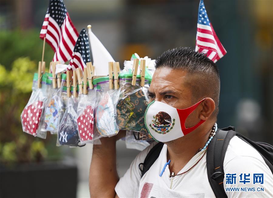 8月19日,一名小販在美國(guó)紐約時(shí)報(bào)廣場(chǎng)售賣(mài)口罩。 新華社記者 王迎 攝 目前美國(guó)累計(jì)確診病例最多的州是加利福尼亞州,為640722例。佛羅里達(dá)州和得克薩斯州確診病例均超過(guò)50萬(wàn)例,紐約州確診病例超過(guò)40萬(wàn)例。累計(jì)確診病例超過(guò)18萬(wàn)例的州還有佐治亞州、伊利諾伊州、亞利桑那州和新澤西州。