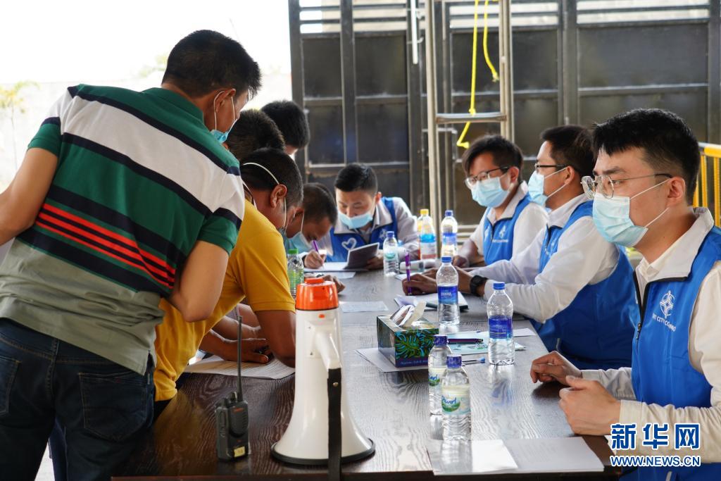 4月6日,在斯里蘭卡科倫坡一個(gè)疫苗接種點(diǎn),志愿者正在幫助前來接種疫苗的中國公民進(jìn)行登記。新華社記者 唐璐 攝