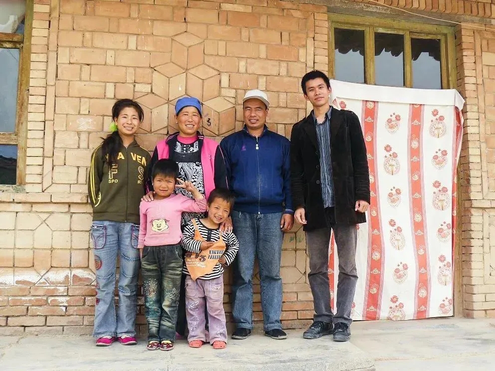 研支團(tuán)成員和受助后治愈的先心病學(xué)生家庭合影 發(fā)起捐建1所希望小學(xué)——海原縣九彩鄉(xiāng)希望小學(xué),捐建1個(gè)帶有標(biāo)準(zhǔn)塑膠跑道的“上弦月”運(yùn)動(dòng)場(chǎng)。