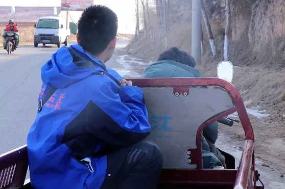 第二十二屆研支團(tuán)成員在村口乘三輪車去學(xué)生家中家訪 他們用雙腳丈量黃土地的距離,扶貧先扶智,讓貧困地區(qū)的孩子接受良好教育,阻斷貧困的代際傳遞是廈大研支團(tuán)從未間斷的接力。