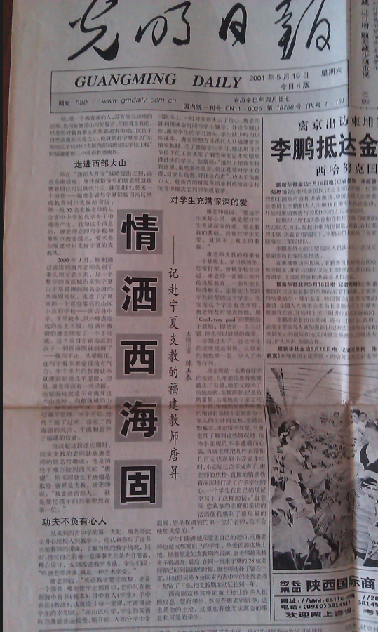 2001年5月19日唐昇老師支教事跡登上國(guó)家級(jí)大報(bào)《光明日?qǐng)?bào)》。 短期交流培訓(xùn)。2000年4月30日,涂雨書記和總務(wù)處黃維煌主任赴西吉中學(xué),與李強(qiáng)校長(zhǎng)等領(lǐng)導(dǎo)和教師交流互動(dòng),并慰問(wèn)正在該校支教的本校英語(yǔ)教師唐昇。2019年7月,學(xué)校選派正高級(jí)教師、省生物學(xué)科教學(xué)帶頭人黃福群等5名骨干教師到西吉中學(xué)開展交流幫扶教研活動(dòng)。黃福群老師做《如何落實(shí)核心素養(yǎng)與學(xué)科教學(xué)的融合》專題講座,并就以課題引領(lǐng)新課堂,論文謀篇新角度,教育主張有智慧做了交流。2020年11月13日,正高級(jí)教師、莆田二中副校長(zhǎng)彭志強(qiáng)帶領(lǐng)福建省“彭志強(qiáng)名師工作室”成員及聘請(qǐng)數(shù)學(xué)科成員赴西吉中學(xué),幫助該校進(jìn)行師資培訓(xùn),4位省級(jí)名師就高中數(shù)學(xué)教學(xué)做了專題講座。彭副校長(zhǎng)做題為《例談對(duì)學(xué)生思維認(rèn)知能力(思維品質(zhì))培養(yǎng)的實(shí)踐與思考》的專題講座。彭副校長(zhǎng)已與西吉中學(xué)約好,若疫情許可,今年四月份將再去一趟。 |
