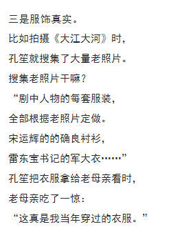 場景、道具、服飾, 為何都要做到如此真實? 孔笙這樣說: “為的就是讓觀眾感受到, 自己是和劇中角色站在一起的。 你把一個東西做好了, 做真實了, 做到演員和觀眾心里去了, 他們就會很感動, 可能并沒有道理, 但他們就是很感動。 他們感動了, 才會相信發(fā)生的故事。” 08