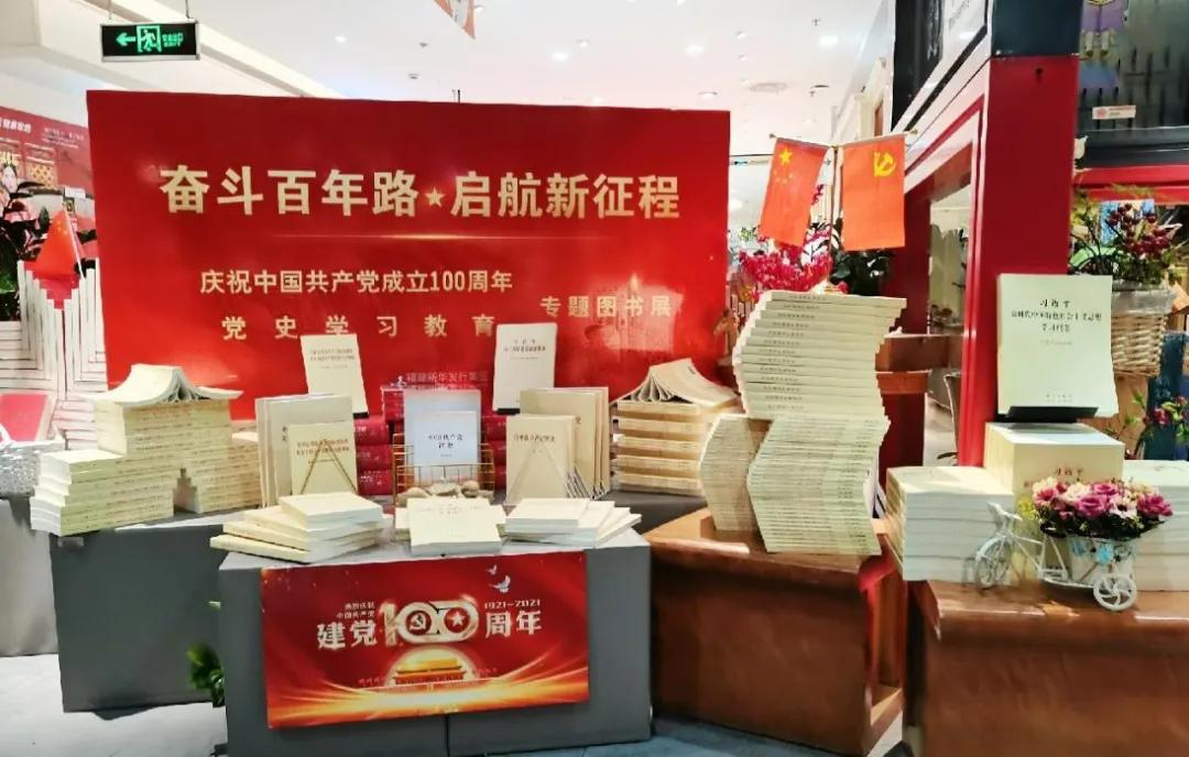 為了加大宣傳征訂力度,福州分公司在各賣場(chǎng)最顯眼的位置都設(shè)立“奮斗百年路·啟航新征程——慶祝中國(guó)共產(chǎn)黨成立100周年黨史學(xué)習(xí)教育”專題圖書展柜,利用碼堆造型、宣傳展板、張貼海報(bào)、電子屏幕、店員推介等形式對(duì)黨史學(xué)習(xí)教育圖書進(jìn)行重點(diǎn)宣傳,充分發(fā)揮新華書店思想宣傳的陣地作用,營(yíng)造出濃厚的黨史學(xué)習(xí)氛圍。 目前,福州分公司各賣場(chǎng)“新華·黨建讀物空間”均已布置完成,為全市黨員干部群眾廣泛開展“學(xué)黨史、守初心、勇?lián)?dāng)”閱讀分享活動(dòng)提供了平臺(tái)支撐。福州分公司還組建了黨史學(xué)習(xí)宣傳志愿小分隊(duì),將在下一階段開展一系列生動(dòng)活潑、內(nèi)容豐富的“微宣講”活動(dòng),進(jìn)一步延伸文化服務(wù),營(yíng)造良好的學(xué)習(xí)氛圍。