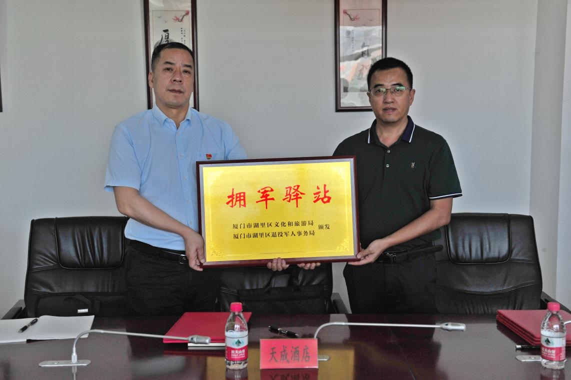 2021年4月26日湖里區(qū)文化和旅游局為天成酒店授牌 廈門市退役軍人服務(wù)中心供圖 |