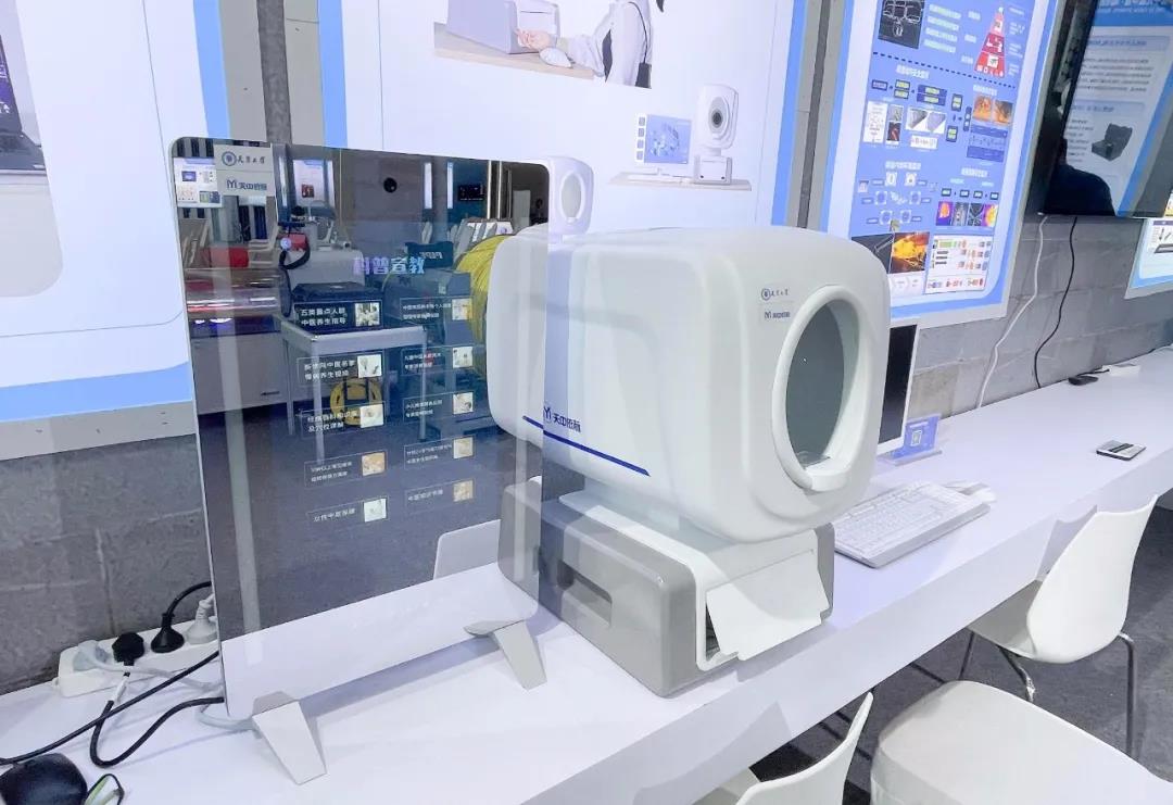 天津大學(xué)展區(qū)內(nèi)的給水管道內(nèi)檢測機(jī)器人吸引了眾人的眼球。作為管道的“體檢醫(yī)生”,該設(shè)備通過內(nèi)檢測的手段,可以實(shí)現(xiàn)帶水壓下評(píng)估各類管道異常,微小的漏水點(diǎn)都能一網(wǎng)打盡。 它最大的特點(diǎn)是可以帶壓檢測,不影響用戶的供水,能夠發(fā)現(xiàn)管道內(nèi)壁的一些沉降脫落或者說是管道內(nèi)部的微小泄露。這個(gè)是我們的CCTV攝像的傳感功能,第二節(jié)是我們那個(gè)水聽器的傳感元部件,第三節(jié)是我們的地面信標(biāo)的定位器,那這控制臺(tái)上可以清晰地看到我們?cè)跈z管道內(nèi)部的視頻狀態(tài),還有可以聽到監(jiān)測到內(nèi)部泄漏的一些音頻信號(hào),協(xié)助自來水公司去精準(zhǔn)定位它的泄漏點(diǎn)。 來自天津大學(xué)精儀精測團(tuán)隊(duì)的黃啟漢介紹:“我們的水下帶纜機(jī)器人有攝像頭,可以觀察到管道內(nèi)部的異常情況,內(nèi)置有水聽傳感器,可以聽到管道內(nèi)部微小的泄漏;還有一個(gè)是可以清楚觀察閥門狀況、管壁破損、腐蝕、雜質(zhì)淤積等。與傳統(tǒng)的檢測方法不同的是采用內(nèi)檢測方式,清晰度準(zhǔn)確度更高?!睋?jù)了解,水下帶纜機(jī)器人配置高,可一次在地下前行檢測2公里,相當(dāng)于“醫(yī)生”給管道做“腸鏡”,再通過地面輔助的信標(biāo)系統(tǒng)實(shí)現(xiàn)精準(zhǔn)定位,解決常規(guī)檢漏效率低的難題。 智能中醫(yī)診斷裝備