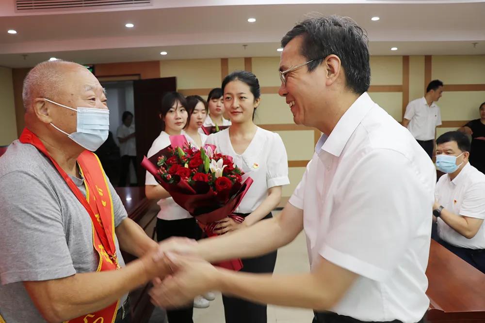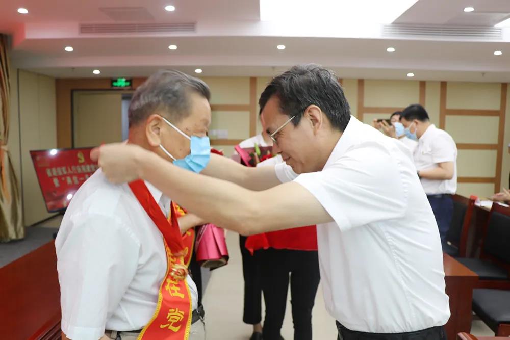 伍斌為所屬單位兩位黨齡超過(guò)50年的退休老黨員許世農(nóng)、吳啟文頒發(fā)“光榮在黨50年”紀(jì)念章。