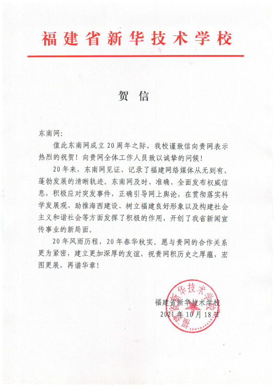 福建省新華技術(shù)學(xué)校賀信