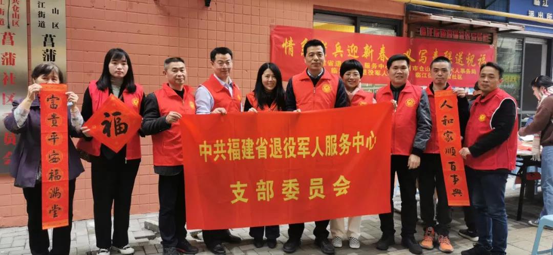 志愿服務(wù)送溫情,濃濃關(guān)懷暖兵心。在虎年春節(jié)即將來(lái)臨之際,為進(jìn)一步關(guān)心關(guān)愛(ài)現(xiàn)役軍人家屬、退役軍人和其他優(yōu)撫對(duì)象,營(yíng)造喜慶的節(jié)日氛圍,省退役軍人服務(wù)中心、省軍供站深入福州掛鉤聯(lián)系社區(qū)紛紛組織開(kāi)展迎新春志愿活動(dòng),把黨和政府的關(guān)愛(ài)和溫暖送到老兵心坎上。 省退役軍人服務(wù)中心 1月26日下午,省退役軍人服務(wù)中心聯(lián)合福州市倉(cāng)山區(qū)退役軍人事務(wù)局深入倉(cāng)山區(qū)臨江街道菖蒲社區(qū)開(kāi)展“情系老兵迎新春 義寫(xiě)春聯(lián)送祝福”活動(dòng),把祝福送到退役老兵和其他優(yōu)撫對(duì)象身邊。