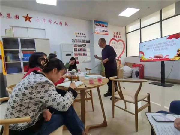 培訓(xùn)現(xiàn)場(chǎng),區(qū)退役軍人服務(wù)中心主任對(duì)建檔立卡和優(yōu)待證申領(lǐng)發(fā)放工作進(jìn)行深入部署和全盤規(guī)劃。本次業(yè)務(wù)培訓(xùn)會(huì)對(duì)優(yōu)待證工作開(kāi)展情況進(jìn)行指導(dǎo),分析解答工作推進(jìn)過(guò)程中出現(xiàn)的疑難問(wèn)題,并與鄉(xiāng)鎮(zhèn)退役軍人服務(wù)站經(jīng)辦人員一道協(xié)商解決人員、設(shè)備、辦公場(chǎng)所等保障要素。 目前,泉州臺(tái)商投資區(qū)已全面展開(kāi)退役軍人及其他優(yōu)撫對(duì)象優(yōu)待證申領(lǐng)發(fā)放工作,區(qū)、鄉(xiāng)鎮(zhèn)兩級(jí)建立工作機(jī)制、整合工作力量、細(xì)化工作指導(dǎo),確保建檔立卡和優(yōu)待證申領(lǐng)工作有序推進(jìn)。 寧德柘榮縣開(kāi)展優(yōu)待證業(yè)務(wù)培訓(xùn)會(huì)