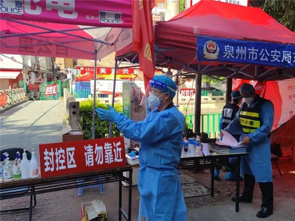 泉州市退役軍人局副局長(zhǎng)王志明和泉州市應(yīng)急局副局長(zhǎng)李雋同是團(tuán)級(jí)軍轉(zhuǎn)干部、同在東海街道云山社區(qū)院前自然村指揮鎮(zhèn)守關(guān)卡。他們戲稱:“我們兩個(gè)團(tuán)長(zhǎng)現(xiàn)在成了名副其實(shí)的副卡長(zhǎng)?!?/p> 為切實(shí)阻斷疫情傳播途徑,云山社區(qū)院前自然村在橋南出入口設(shè)置唯一的一個(gè)卡口,王志明和李雋化身“守關(guān)人”,全副武裝,堅(jiān)守“疫”線,嚴(yán)守“疫情不外溢,不流入”的原則,用責(zé)任和擔(dān)當(dāng)筑牢社區(qū)安全的第一道防線。