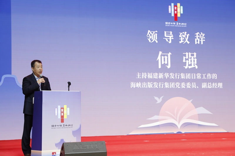 主持福建新華發(fā)行集團(tuán)日常工作的海峽出版發(fā)行集團(tuán)黨委委員、副總經(jīng)理何強(qiáng)致辭 唐偉平 攝 主持福建新華發(fā)行集團(tuán)日常工作的海峽出版發(fā)行集團(tuán)黨委委員、副總經(jīng)理何強(qiáng)表示,此次大會(huì)是福建省第八屆海峽讀者節(jié)的主要活動(dòng)內(nèi)容之一。福建新華發(fā)行集團(tuán)作為國(guó)有文化企業(yè),肩負(fù)著“舉旗幟、聚民心、育新人、興文化、展形象”的責(zé)任擔(dān)當(dāng),希望通過(guò)舉辦此次閱讀大會(huì),加強(qiáng)海峽出版發(fā)行集團(tuán)、福建新華發(fā)行集團(tuán)與連江縣委縣政府的聯(lián)系合作,共同推動(dòng)連江全民閱讀事業(yè)發(fā)展,攜手共建書香金鳳。 “我們舉辦本次活動(dòng),旨在進(jìn)一步激發(fā)全縣職工群眾讀書的興趣,營(yíng)造濃厚的讀書氛圍,養(yǎng)成良好的讀書習(xí)慣,提高職工群眾的審美修養(yǎng)和人文底蘊(yùn),促進(jìn)職工群眾全面健康、可持續(xù)的發(fā)展?!边B江縣委常委、縣總工會(huì)主席陳欽在致辭中表示,希望相關(guān)部門要引導(dǎo)職工群眾努力適應(yīng)新的形式和變化,積極推廣適應(yīng)大眾的新型閱讀方式,創(chuàng)新方式方法,開展豐富多樣的閱讀推廣活動(dòng),切實(shí)發(fā)揮思想引領(lǐng)和文化支撐作用,推動(dòng)形成良好的基層閱讀風(fēng)尚,滿足人民群眾多樣化精神文化需求。 首屆福建新華閱讀大會(huì)·全民閱讀“八進(jìn)”工作論壇啟動(dòng) 又訊(林文強(qiáng))繼開幕儀式后首屆福建新華閱讀大會(huì)·全民閱讀“八進(jìn)”工作論壇暨連江閱讀活動(dòng)啟動(dòng)儀式隨之開啟?,F(xiàn)場(chǎng),在視頻連線全國(guó)政協(xié)委員,中國(guó)新聞出版研究院院長(zhǎng),“國(guó)務(wù)院政府特殊津貼”獲得者,中國(guó)閱讀三十人論壇成員魏玉山后,開啟了一番閱讀界的唇槍論劍。