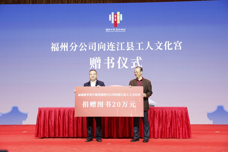 新華發(fā)行集團(tuán)福州分公司向連江工人文化宮捐贈(zèng)圖書 唐偉平 攝 活動(dòng)期間,福建新華發(fā)行集團(tuán)聯(lián)合福建少年兒童出版社、海峽文藝出版社向六所連江學(xué)校捐贈(zèng)了圖書,通過(guò)圖書“進(jìn)校園”“進(jìn)農(nóng)村”,以實(shí)際行動(dòng)推動(dòng)全民閱讀,助力鄉(xiāng)村精神文明建設(shè)。同時(shí),現(xiàn)場(chǎng)還舉行了“福建新華書店·悅讀驛站(連江)”授牌儀式,在連江縣工人文化宮新增福建新華書店·悅讀驛站線下網(wǎng)點(diǎn),豐富讀者的數(shù)字閱讀體驗(yàn);此外,福建新華發(fā)行集團(tuán)福州分公司與連江縣總工會(huì)簽訂合作協(xié)議,為連江縣企業(yè)圖書“漂讀站點(diǎn)”授牌,并向連江縣工人文化宮捐贈(zèng)價(jià)值20萬(wàn)元的圖書,助推“書香金鳳”建設(shè)。