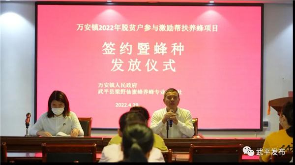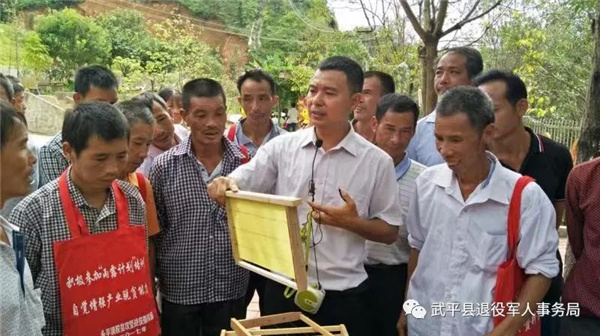 編者按 退役軍人是重要的人力資源,促進(jìn)他們就業(yè)創(chuàng)業(yè)、引導(dǎo)他們積極投身創(chuàng)業(yè)創(chuàng)新,對于更好實(shí)現(xiàn)退役軍人自身價(jià)值、助推經(jīng)濟(jì)社會(huì)發(fā)展、服務(wù)國防和軍隊(duì)建設(shè)具有重要意義。為貫徹執(zhí)行好省退役軍人廳關(guān)于《進(jìn)一步促進(jìn)退役軍人就業(yè)創(chuàng)業(yè)十條措施》,3月17日起,廳官微官網(wǎng)開設(shè)“創(chuàng)業(yè)先鋒”專欄,陸續(xù)報(bào)道我省退役軍人秉持軍人本色奮斗在經(jīng)濟(jì)建設(shè)主戰(zhàn)場的創(chuàng)業(yè)典型,宣傳社會(huì)各界關(guān)心支持退役軍人就業(yè)創(chuàng)業(yè)的動(dòng)人故事,以此弘揚(yáng)自信自強(qiáng)、積極向上的精神風(fēng)貌,營造有利于退役軍人就業(yè)創(chuàng)業(yè)的良好氛圍。 近日,武平縣萬安鎮(zhèn)2022年脫貧戶參與激勵(lì)幫扶養(yǎng)蜂項(xiàng)目簽約暨蜂種發(fā)放儀式在石燎閣蜜蜂科普基地舉行,基地負(fù)責(zé)人退役老兵鐘亮生為10位幫扶脫貧戶現(xiàn)場頒發(fā)了蜜蜂認(rèn)養(yǎng)證書,并指導(dǎo)他們做好蜜蜂日常管理。