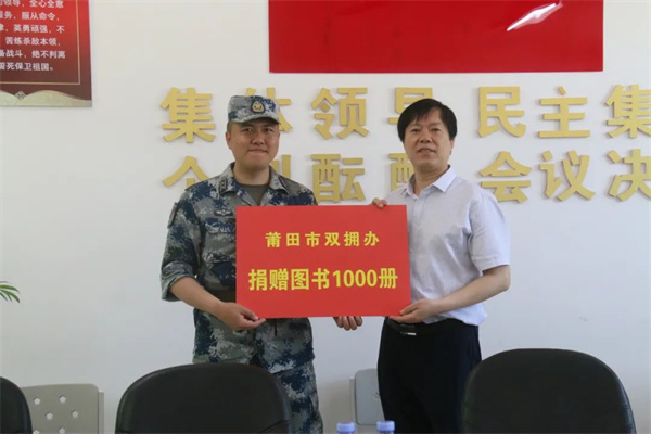 △向部隊贈送圖書,助力“書香軍營”建設。 “這幾年,隨著城市人口大量集聚,城市公辦優(yōu)質(zhì)幼兒園學位緊缺,軍人的學前子女入園成為軍人的煩心事?!秉S松林說,莆田市雙擁辦急軍人之所急,充分發(fā)揮軍地橋梁紐帶作用,多方呼吁協(xié)調(diào),積極落實《軍人地位和權(quán)益保障法》,建立長效機制,保障軍人學齡前子女100%入讀公辦優(yōu)質(zhì)幼兒園,并全部落實寄午,極大緩解了軍人家庭一天多次接送的困難;義務教育階段,依照就近就便原則100%安排到優(yōu)質(zhì)的中小學就讀;非義務教育階段,中考加分后未達優(yōu)質(zhì)普高錄取線的,給予優(yōu)待安排市區(qū)普通高中就學。 “在優(yōu)質(zhì)教育資源稀缺的情況下,加大力度給予軍人子女照顧優(yōu)待?!秉S松林介紹,2018年以來,共有789名軍人子女享受教育優(yōu)待政策,讓軍人不為“后代”憂心。同樣,在解決隨軍未就業(yè)及隨調(diào)家屬工作問題上,黃松林說:“市本級每年拿出6個全額撥款事業(yè)崗位、每個縣(區(qū))根據(jù)駐軍規(guī)模每年拿出一定數(shù)量全額撥款事業(yè)崗位定向招考轄區(qū)隨軍未就業(yè)家屬,同時聘請培訓機構(gòu)為參加定向招考的隨軍未就業(yè)家屬進行考前培訓;積極鼓勵隨軍家屬參加學歷教育和勞動技能培訓,相關(guān)費用由財政承擔。2018年以來,共有24名隨軍隨調(diào)家屬按照身份不變、專業(yè)對口的原則全部安置到位,市縣區(qū)共定向招考安置47名隨軍未就業(yè)家屬進入事業(yè)單位工作,讓軍人不為'后院'分心?!?/p>