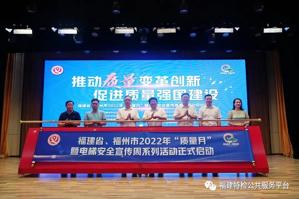 近日,福建省、福州市2022年“質(zhì)量月”暨電梯安全宣傳周系列活動(dòng)啟動(dòng)儀式在福州市鼓樓實(shí)驗(yàn)小學(xué)教育集團(tuán)屏山校區(qū)舉行,福建省市場(chǎng)監(jiān)管局副局長(zhǎng)劉先義、福州市市場(chǎng)監(jiān)管局黨組書(shū)記、局長(zhǎng)陳宗勝、福建省特檢院黨委書(shū)記徐彩軍等出席活動(dòng)。福州廣播電視臺(tái)少兒頻道全程錄播,新浪福建進(jìn)行了線上直播。