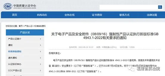 福建省質(zhì)檢院新版GB4943.1已獲認(rèn)可并完成備案
