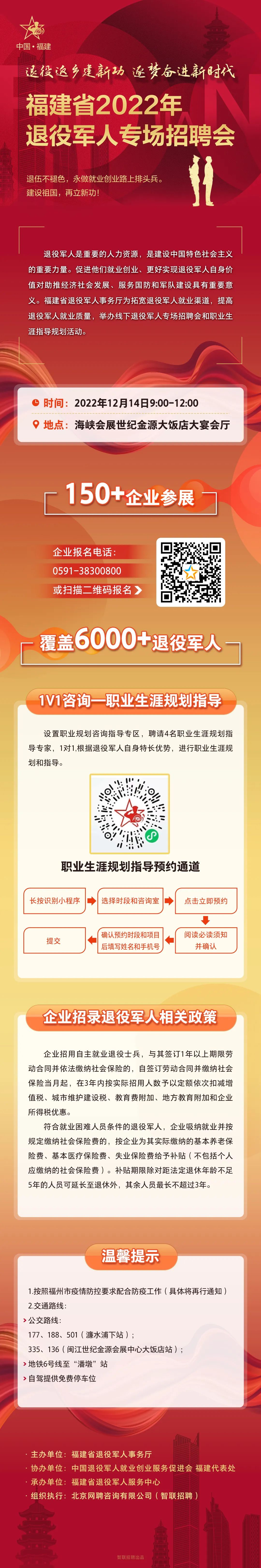 預(yù)約報(bào)名!福建省2022年退役軍人專場(chǎng)招聘會(huì)12月14日舉辦