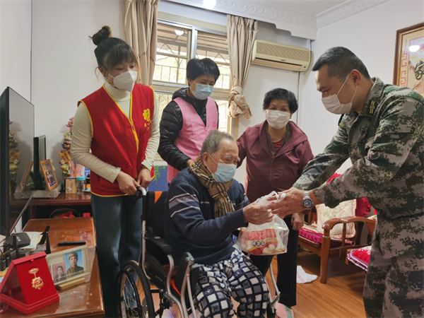隨后,服務站志愿者組成多個“關愛小組”,向轄區(qū)行走不便的退役老兵、老黨員、困難戶等上門送上暖心湯圓,一起分享節(jié)日的快樂。“太謝謝你們了!讓我們提前過上冬至節(jié)!”在退役軍人、老黨員湯阿南家中,社區(qū)負責人鐘銘德攜社區(qū)民兵連長、退役軍人干事等一起送上熱氣騰騰的湯圓,并與湯老夫婦熱情交談,與他們聊家常、問冷暖,送上節(jié)日的祝福,叮囑他們要保重身體。 一碗溫熱的湯圓,一個溫暖的笑容,一句溫馨的問候。據(jù)悉,當天服務站共送出湯圓50多份,此舉不僅弘揚民俗文化和民族習俗,還促進了轄區(qū)軍屬、退役軍人與群眾之間的親密聯(lián)系和相互交流,營造了濃濃的節(jié)日氛圍。 |