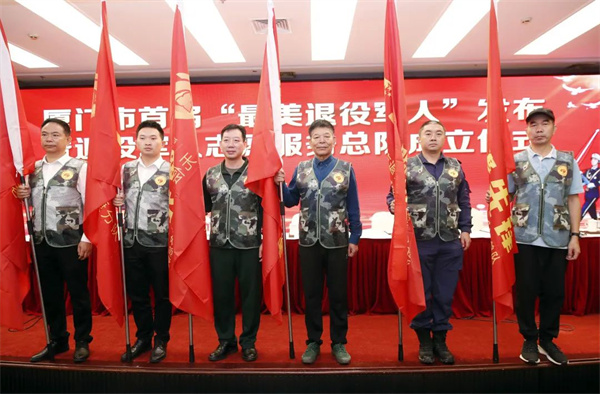 “一鷺先鋒”廈門市退役軍人志愿服務總隊應急救援分隊授旗現場,廈門曙光救援隊隊長王剛(右二) 為廈門的救援力量點贊! 為廈門退役軍人志愿者點贊! 愿他們順利出征 平安歸來 |