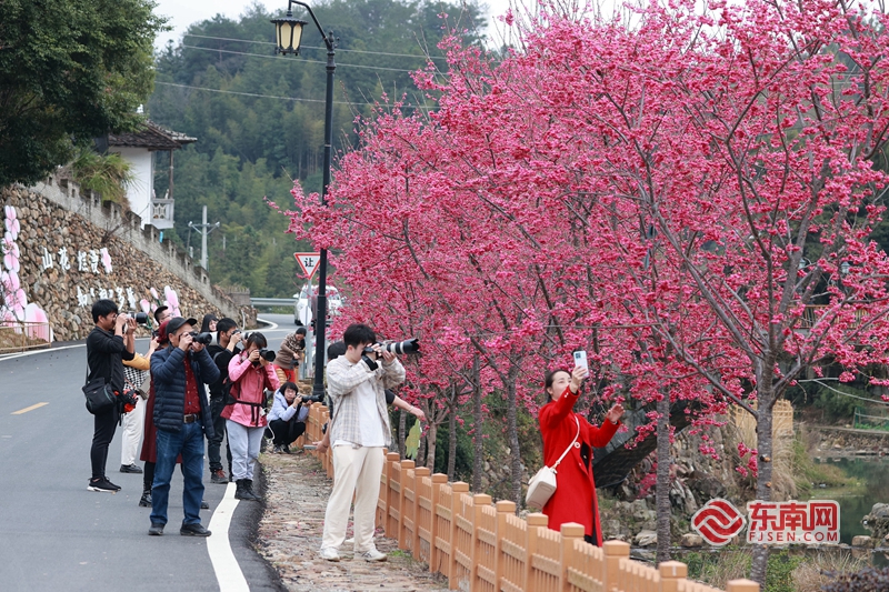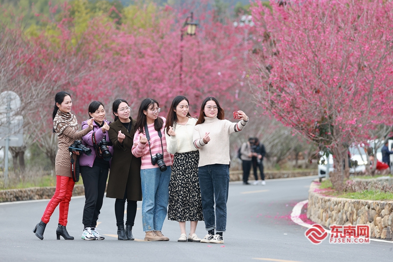 艷麗的櫻花吸引了許多攝影愛(ài)好者前來(lái)取景。陳英杰 攝 東南網(wǎng)2月15日訊(通訊員 陳英杰)初春的閩南大地,一派勃勃生機(jī)。日前,德化縣“花開(kāi)瓷都·‘櫻’你浪漫”櫻花節(jié)活動(dòng)在雷峰鎮(zhèn)潘祠村櫻花園舉辦, 千畝近100萬(wàn)株福建山櫻花優(yōu)雅綻放、競(jìng)相爭(zhēng)艷,宛若“群櫻薈萃”,成為雷峰鎮(zhèn)一道獨(dú)特的風(fēng)景線,吸引眾多游客爭(zhēng)相來(lái)打卡體驗(yàn)。