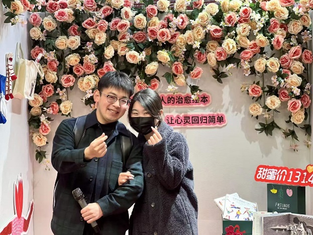 現(xiàn)場(chǎng)主持人興致激昂的開(kāi)場(chǎng)、朗讀者們聲情并茂地朗讀、贈(zèng)送新華書店滿減優(yōu)惠券、文創(chuàng)85折優(yōu)惠的有獎(jiǎng)問(wèn)答、為優(yōu)秀朗讀者頒發(fā)“朗讀者證書”等環(huán)節(jié)都吸引了眾多讀者參加和觀看,也促進(jìn)了讀者到店消費(fèi)。 2月14日,為營(yíng)造溫馨、浪漫、喜慶的節(jié)日氛圍,中山·閱埕門店開(kāi)展“千里情書 為愛(ài)告白”朗讀者專場(chǎng)活動(dòng),以書之名、表我之情,千里情書,為愛(ài)告白。 活動(dòng)現(xiàn)場(chǎng)吸引了許多攜手愛(ài)人路過(guò)的人們駐足觀看,甚至參與到活動(dòng)中,他們攜愛(ài)而來(lái),為愛(ài)發(fā)聲,有即將步入婚姻的情侶,也有結(jié)婚十幾年的夫妻……朗讀者們聲色并茂,感情豐厚,臺(tái)下觀眾也認(rèn)真傾聽(tīng),不斷鼓掌,高潮迭起,彌漫著甜蜜、幸福、感人的氣息。中山·閱埕門店還為參加活動(dòng)的讀者特別準(zhǔn)備了情人節(jié)限定驚喜禮袋、香道表演、告白禮物、限時(shí)掉落禮品等環(huán)節(jié),陪伴讀者共赴浪漫情人節(jié)。