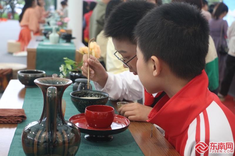 現(xiàn)場體驗點茶 東南網記者 陳艷 攝 福建新華發(fā)行(集團)黨委委員、副總經理謝瑞津在致辭中對建陽區(qū)啟動首屆“書香建陽 全民閱讀”文化周暨第九屆海峽讀者節(jié)南平分會場表示祝賀,并表示今后福建新華發(fā)行集團將持續(xù)加強閱讀引領,培育閱讀新風,創(chuàng)新工作方式,不斷做強做優(yōu)新華閱讀品牌活動,為推動全民閱讀、建設書香八閩作出新貢獻。