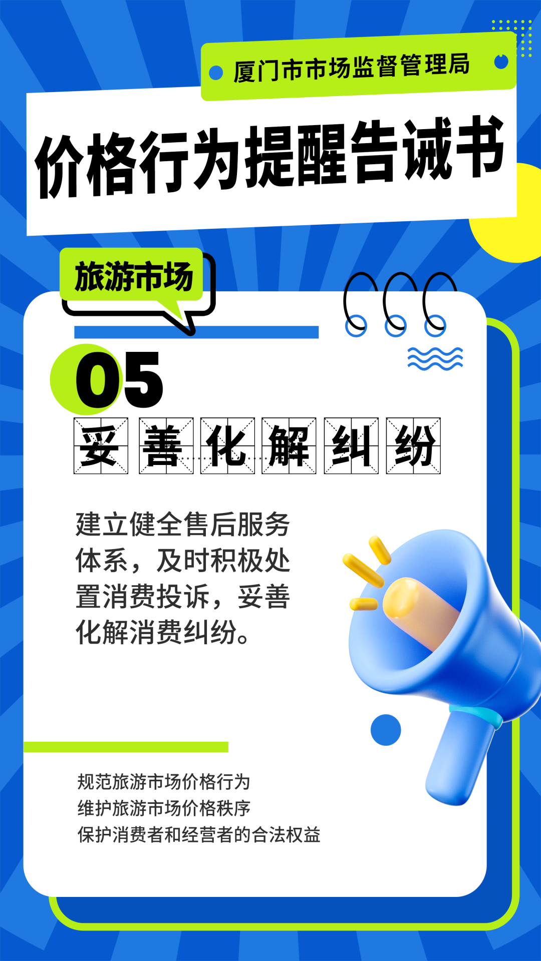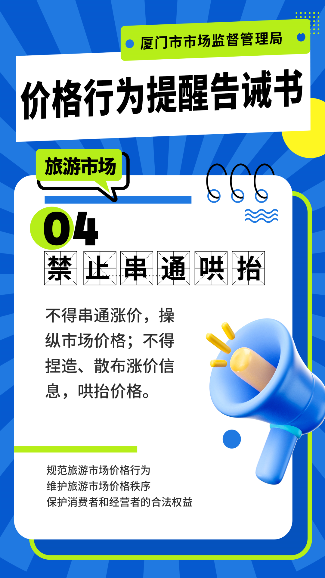 參會酒店、民宿協(xié)會和平臺經(jīng)營者也介紹了近期客房預(yù)訂及價格情況,各連鎖酒店假日期間客房價格受供求關(guān)系影響有較高幅度上漲,但均能落實明碼標價、誠信經(jīng)營,平臺企業(yè)也表示將落實主體責任,持續(xù)關(guān)注線上酒店客房價格形勢,及時啟動預(yù)警機制,保護好消費者權(quán)益。 現(xiàn)場,參會主體現(xiàn)場簽署價格行為合規(guī)承諾書,向社會公開承諾嚴格守法經(jīng)營,做到明碼標價、誠信經(jīng)營,合理定價,共同維護好廈門市旅游市場價格秩序。 下一步,市市場監(jiān)管局將進一步加大旅游市場價格監(jiān)督檢查力度,節(jié)日期間持續(xù)關(guān)注旅游市場價格形勢和投訴舉報情況,安排力量增加檢查頻次,嚴肅查處各類價格違法行為,及時查處和曝光情節(jié)嚴重、性質(zhì)惡劣的典型案例,營造良好旅游消費環(huán)境。 |