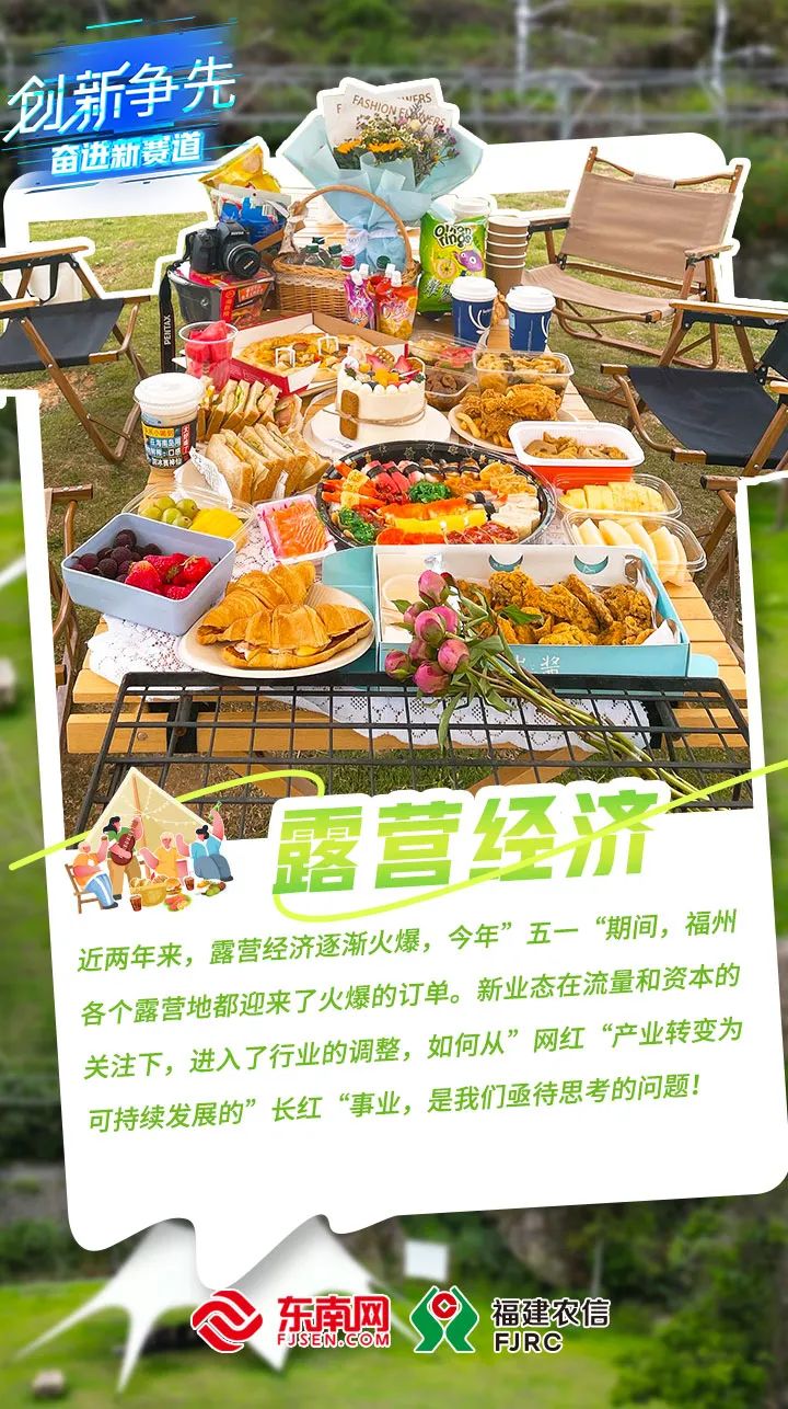 去年以來,露營經(jīng)濟(jì)開始逐漸爆火,在抖音短視頻平臺上,露營話題播放量超過265.6億次。今年 “五一”期間,露營相關(guān)產(chǎn)品銷售再度火爆。在蘇寧易購電商平臺,露營裝備銷售同比提升123%,其中熱門產(chǎn)品帳篷、天幕、吊床、野餐墊、折疊椅等相關(guān)商品銷量同比增長110%。不少露營地也在推薦上,給自己貼上“回歸山野”“逃離都市”“詩與遠(yuǎn)方”“寶藏營地”等標(biāo)簽。 經(jīng)歷了流量和規(guī)模的雙重“狂飆”,露營經(jīng)濟(jì)這一新賽道正進(jìn)入沉淀和調(diào)整期。營地生火、戶外用電隱患、露營污水污染、噪音擾民等問題也在困擾著露營經(jīng)濟(jì),這一新興業(yè)態(tài)亟需規(guī)范管理。如何從網(wǎng)紅爆品轉(zhuǎn)變?yōu)槌掷m(xù)散發(fā)魅力的經(jīng)濟(jì)賽道基石?多種業(yè)態(tài)融合發(fā)展,增加“新玩法”,逐步完善基礎(chǔ)設(shè)施、合理搭配的露營裝備、周到細(xì)致的配套服務(wù)……今天,我們一起來探索福建露營經(jīng)濟(jì)產(chǎn)業(yè)的發(fā)展現(xiàn)狀。