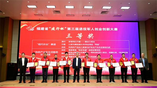 12月2日,由福建省退役軍人事務(wù)廳主辦,福建省科學(xué)技術(shù)廳、人力資源和社會(huì)保障廳、農(nóng)業(yè)農(nóng)村廳協(xié)辦,建設(shè)銀行福建省分行、福建省退役軍人服務(wù)中心承辦的“福建省‘建行杯’第三屆退役軍人創(chuàng)業(yè)創(chuàng)新大賽”在福州舉辦。
