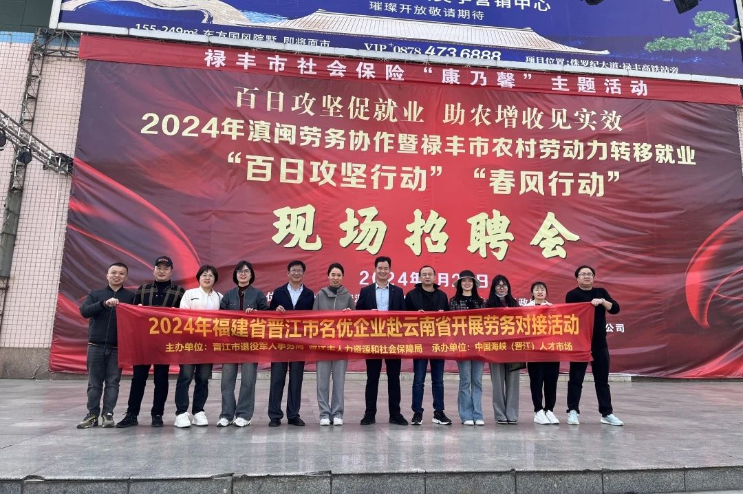 為助力企業(yè)開好局、邁好步。2月19日-23日,由晉江市退役軍人事務局、市人社局、企業(yè)與企業(yè)家聯(lián)合會、晉江海峽人才市場組成的招工“小分隊”搶抓返崗“高峰期”、招工“關(guān)鍵期”,與華聯(lián)、星食代、興業(yè)皮革、旭升廣告等8家企業(yè)人事負責人一起前往云南省楚雄州開展跨省勞務協(xié)作,全力助力企業(yè)節(jié)后順利開工,實現(xiàn)“開門紅”。
