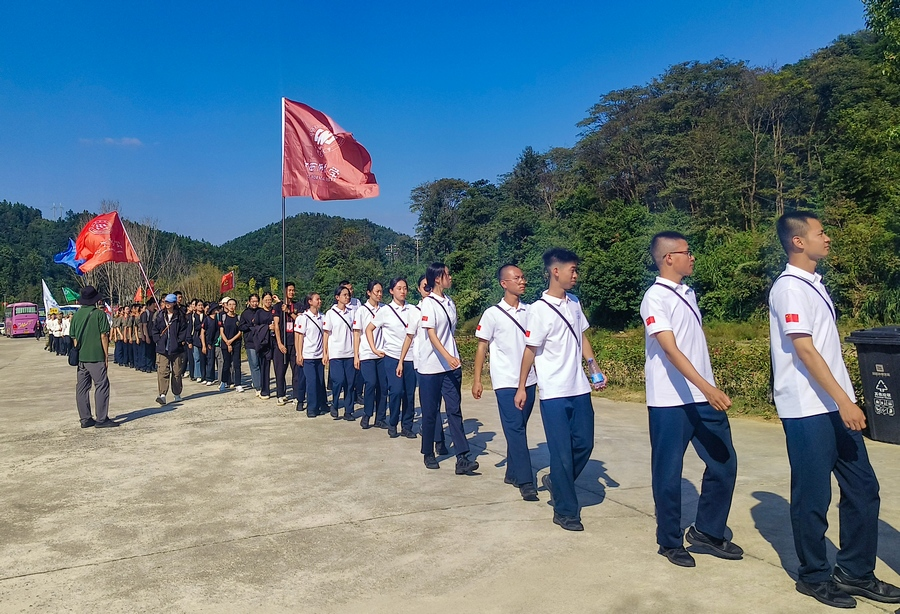 10月11日,參加“重走長(zhǎng)征路”2024年中國(guó)大學(xué)生國(guó)旗護(hù)衛(wèi)隊(duì)展示賽總決賽的大學(xué)生們,來(lái)到祁祿山紅軍長(zhǎng)征小道重走長(zhǎng)征路,追尋紅色記憶,感悟長(zhǎng)征精神。