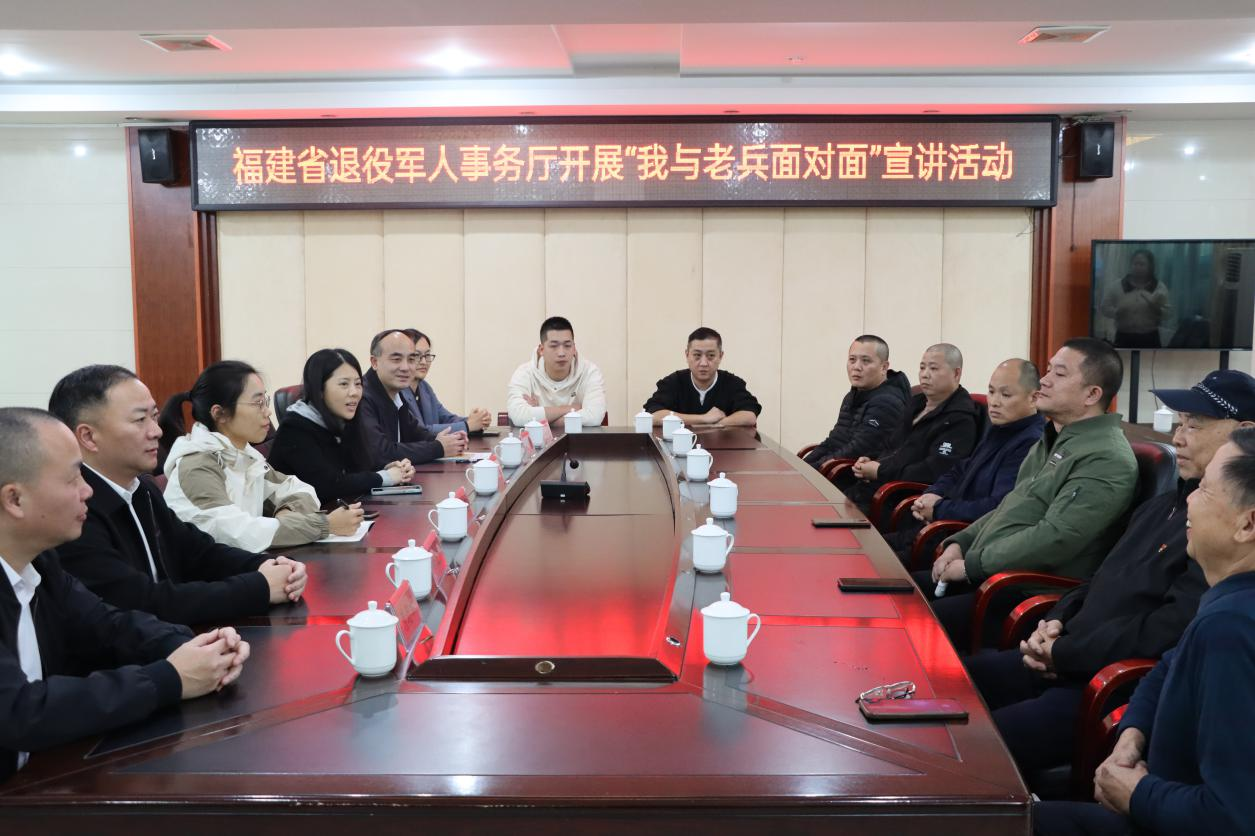 活動(dòng)期間,宣講小分隊(duì)先后來到南平武夷山市和龍巖漳平市、新羅區(qū),與80余名老兵和基層同志開展“面對(duì)面”宣講。每到一處,宣講小分隊(duì)即結(jié)合近年來我省服務(wù)保障相關(guān)工作,學(xué)習(xí)宣傳黨的二十屆三中全會(huì)、全國退役軍人工作會(huì)議和習(xí)近平總書記來閩考察重要講話精神,并重點(diǎn)圍繞新出臺(tái)的《退役軍人安置條例》以及我省困難幫扶、撫恤優(yōu)待相關(guān)政策進(jìn)行解讀,聚焦技能提升、就業(yè)扶持等方面的政策問題現(xiàn)場(chǎng)為老兵們逐一答疑解惑,并征求對(duì)退役軍人服務(wù)保障工作的意見建議。