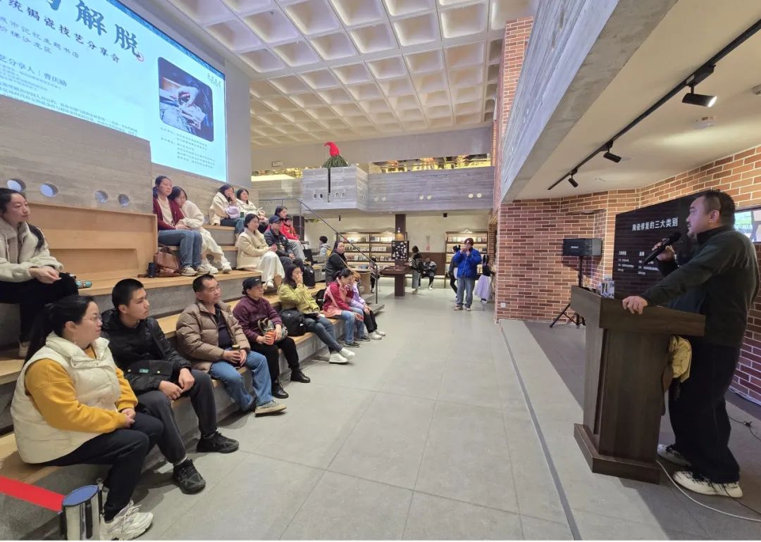 傳承創(chuàng)新,非遺雅韻賀新年 新華書店·城市記憶主題書店于元旦當(dāng)日開展非遺技藝分享體驗(yàn)會(huì)。閩臺(tái)歷史文化研究院特約研究員、2024福布斯中國杰出匠人曹慶勵(lì)帶來課程《束縛與解脫》——福州傳統(tǒng)鋦瓷技藝分享會(huì),為在場的讀者們介紹了福州傳統(tǒng)鋦瓷技藝。非遺髹漆主理人何陳萱美老師則帶來以“新一年,從‘順發(fā)’開始”為主題的非遺體驗(yàn)活動(dòng),現(xiàn)場分享用錦鯉香梳按摩的方法,以達(dá)到養(yǎng)生妙用。 此外,惠安分公司還開展了店內(nèi)研學(xué),講述“?!弊制鹪?,分享福文化傳統(tǒng)知識(shí)。閩清分公司、寧化分公司、華安分公司結(jié)合傳統(tǒng)花燈制作技藝,開展元旦燈籠手工制作活動(dòng),吸引在場的小讀者們熱情參與,現(xiàn)場氣氛熱烈而溫馨。