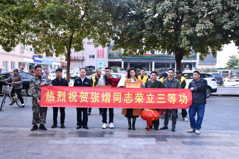 軍地領導與功臣視頻連線道喜 據(jù)悉,張曉燦,1989年3月出生,2007年9月入伍,現(xiàn)任陸軍某部科長。他出生于一個軍人家庭,其父親張民揚曾是位空軍,兩個舅舅一位是海軍,一位是武警。受家人影響,從小立志從軍報國。入伍之后,他立足本職崗位,扎實務實,履職盡責,成績突出,先后被表彰為優(yōu)秀學員、優(yōu)秀帶兵骨干、優(yōu)秀黨務工作者、優(yōu)秀共產(chǎn)黨員、優(yōu)秀基層干部,獲得6次嘉獎、1次三等功獎勵等多項榮譽。他一步步努力實現(xiàn)心中的夢想,用一個個榮譽為軍旗增色添彩,不斷豐富自己的人生價值。 “把橫幅拉起來,鑼鼓敲起來.....”當天,云霄縣云陵鎮(zhèn)萬城花園、建發(fā)半山御園、下坂村等地鑼鼓喧天、人潮攢動,熱鬧非凡??h人武部部長李超、政委吳南華分別帶隊,縣退役軍人事務局、人武部政工科及鄉(xiāng)鎮(zhèn)、村(社區(qū))相關人員組成送喜報小分隊,熱熱鬧鬧將喜報送達軍屬家庭。 在鑼鼓喧天的喜慶聲中,送喜報小組為榮立三等功的現(xiàn)役軍人張曉燦、吳建寧、張熠等軍屬披綬帶,頒發(fā)喜報、送上慰問金與鮮花,向他們致以新年的問候和熱烈的祝賀。 “感謝黨和政府的關懷,感謝部隊對張曉燦的培養(yǎng),作為父母為此感到驕傲和自豪,會一如既往做好孩子堅強后盾,不辜負黨和人民的期望?!睆垥誀N的父親張民揚激動表示。