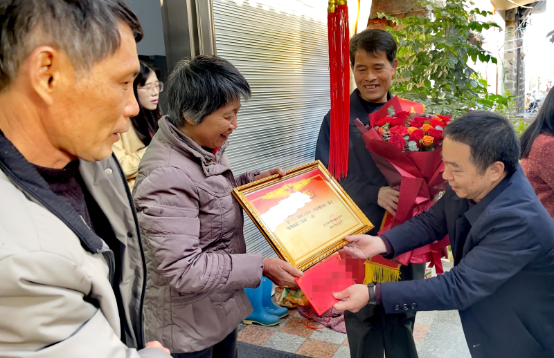 日前,云霄縣人武部、縣退役軍人事務(wù)局、火箭軍某部、和平鄉(xiāng)政府等軍地領(lǐng)導(dǎo)一起前往和平鄉(xiāng)通貝村,為在部隊榮立三等功的現(xiàn)役軍人張敏龍及其家屬送上三等功喜報和新春祝福,與軍人家屬共慶榮耀時刻。 云霄縣軍地有關(guān)領(lǐng)導(dǎo)便敲鑼打鼓到立功軍人家庭送喜報,營造“一人參軍、全村光榮”的濃厚氛圍。截至目前,云霄共送出40份喜報(三等功11份、“四有”優(yōu)秀軍人29份)。這些喜報不僅是對軍人個人榮譽的肯定,更是對軍人辛勤付出的認(rèn)可和關(guān)懷。