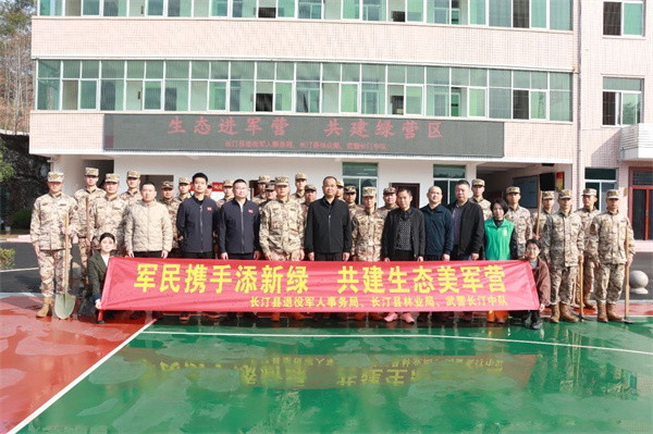 揮鍬鏟土、扶苗填坑、提水澆苗……植樹現場,大家分工協作,合力栽下桂花、柑橘、楊梅、茶花、造型女貞等苗木200余株,為春日明溪注入勃勃生機。 此次植樹活動,不僅美化了環(huán)境,增強了軍民生態(tài)環(huán)保意識,更進一步密切了軍民關系。下一步,明溪縣將繼續(xù)發(fā)揚雙擁共建優(yōu)良傳統(tǒng),深化軍地合作,持續(xù)開展形式多樣的軍民共建活動。 連城縣 春風拂檻,綠意漸濃。3月11日上午,龍巖市連城縣退役軍人事務局、縣林業(yè)局、文亨鎮(zhèn)聯合開展“春風送新綠 植樹進軍營”活動,以綠化擁軍為實踐載體,著力營造良好營區(qū)環(huán)境。