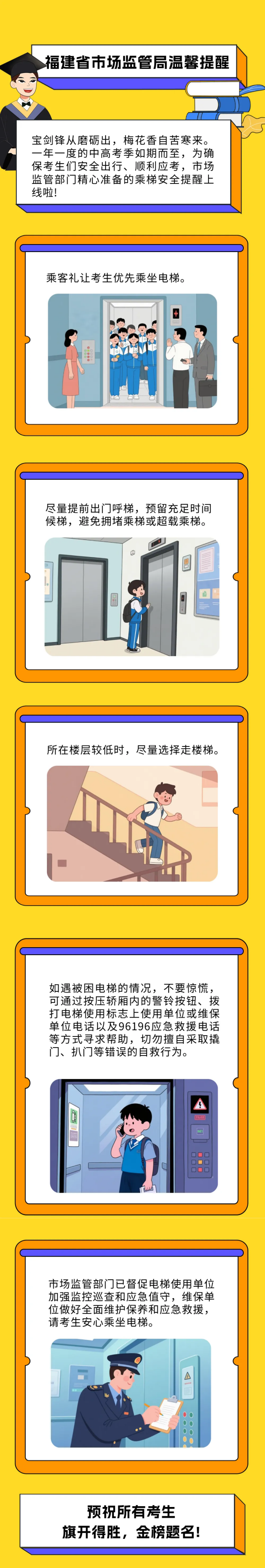 市場(chǎng)監(jiān)管這份提醒,助考生安全乘梯“趕考”無(wú)憂!